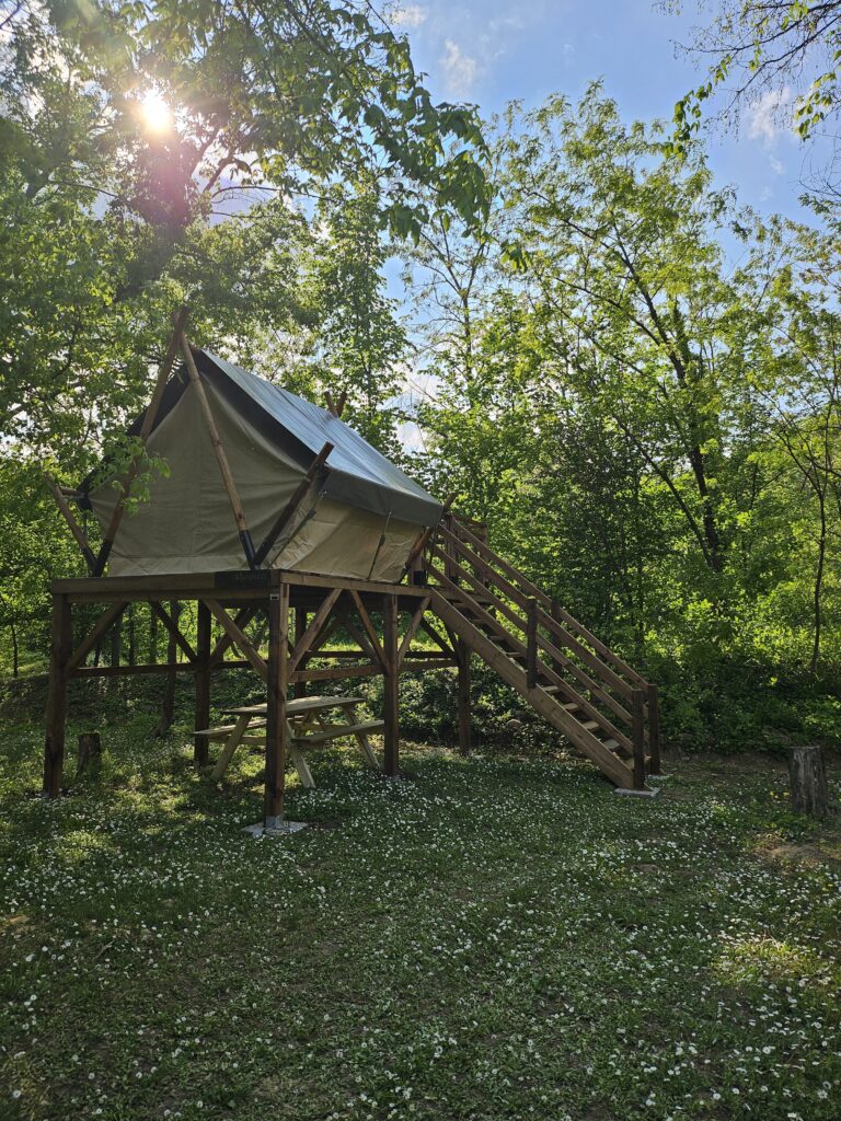 This mobile home is equipped with a bathroom with shower and washbasin, a separate toilet, a bedroom with a double bed (140×190), two bedrooms with two single beds (80×190), a kitchen equipped with hob, fridge, microwave and coffee maker, a lounge area with bench, table and TV. The mobile home’s semi-covered terrace is equipped with garden furniture. Optional rental of sheets and towels, end-of-stay cleaning.